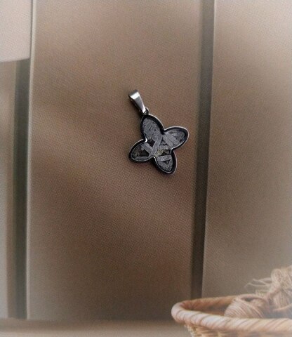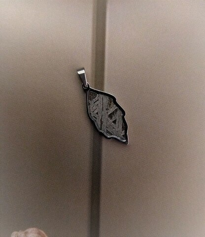 Кулон выполнен из стали и метеорита Алетай. Вставка из метеорита находится под закаленным стеклом...