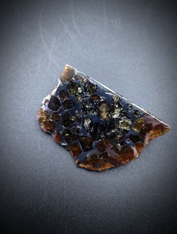 Кольцо выполнено из серебра и необработанного оливина из метеорита Сеймчан.