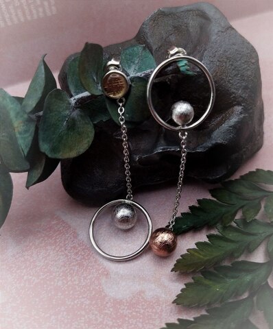 Серьги из серебра 925 пробы, метеорит Муонионалуста, родирование, вес 14,2г.