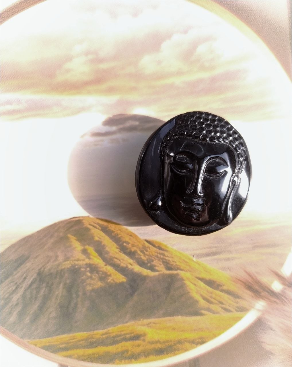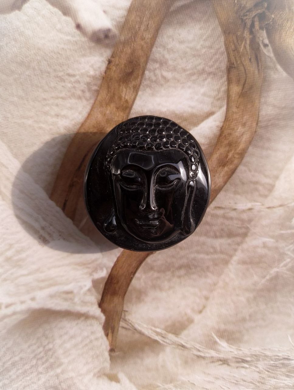 Резьба по камню, изображение Будды - тектит индошинит.