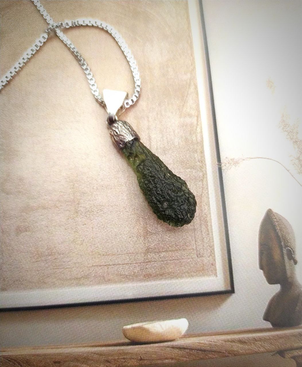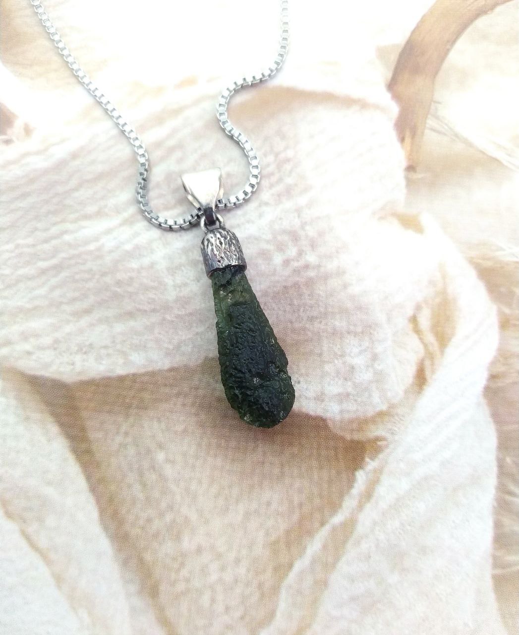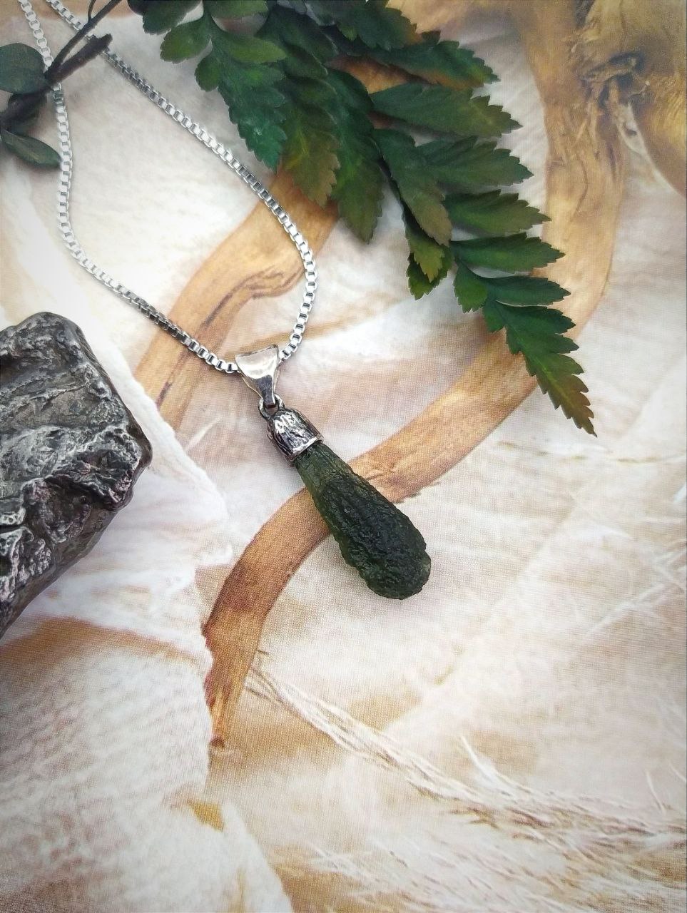 Молдавит. Тектит. Стекло импактного происхождения (в результате удара метеорита о землю). Найдено на территории Чехии.